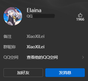 周佳希,现名 Xiaoxilei,QQ现名 Elaina 。